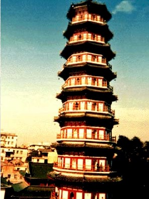The monastery's pagoda, which looks like a nine-storied structure but actually has
